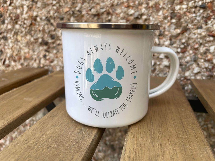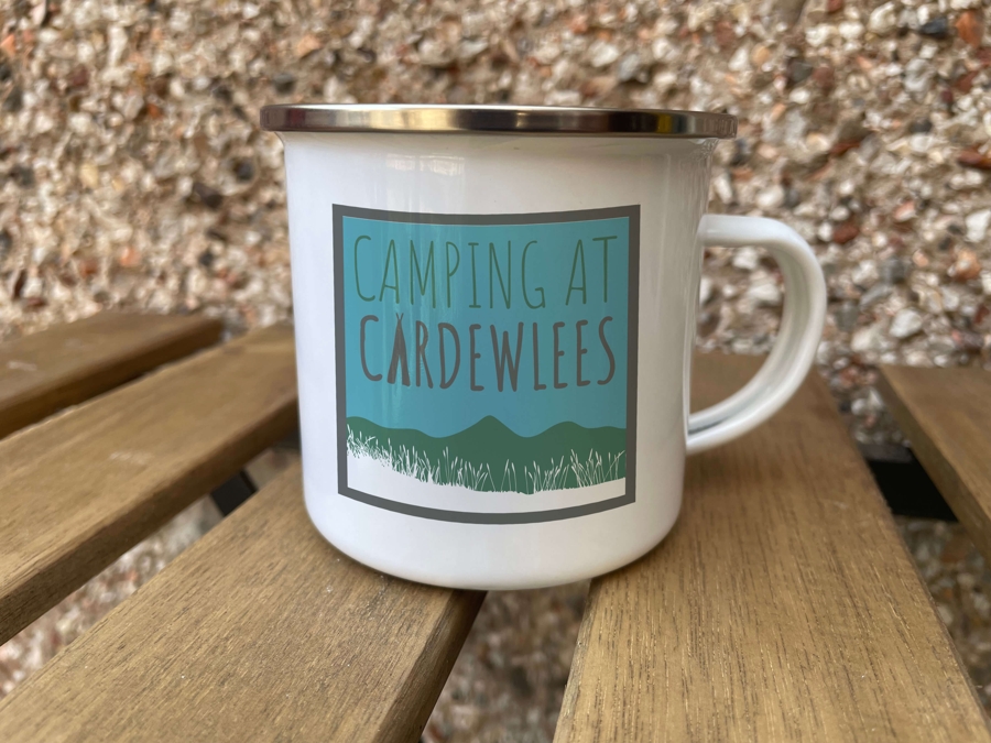Mug has a slogan on one side and the Camping at Cardewlees logo on the other.