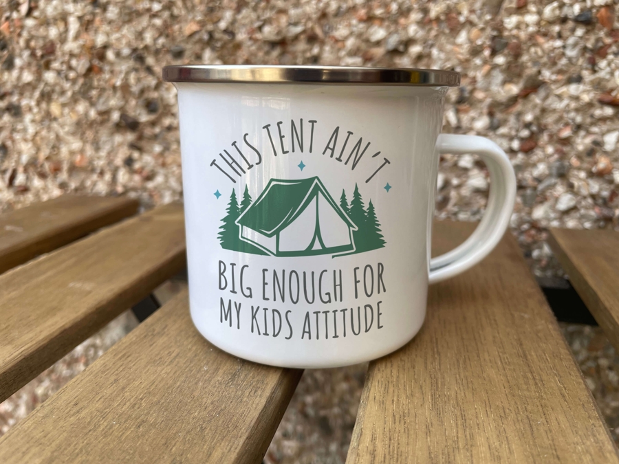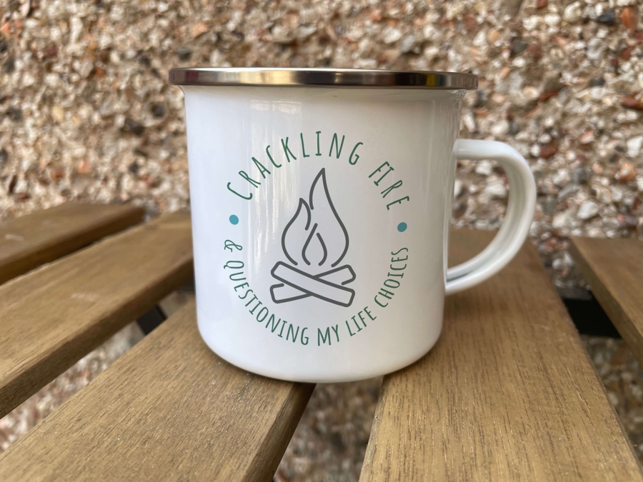 | Design | Crackling Fire, Kid's Attitude, Dogs Welcome, Water or Gin, Bra, Eat, Sleep, Camp Life, I'm Outdoorsy, #TeamJohnny, #TeamBecki, Fire Pit & Chill |