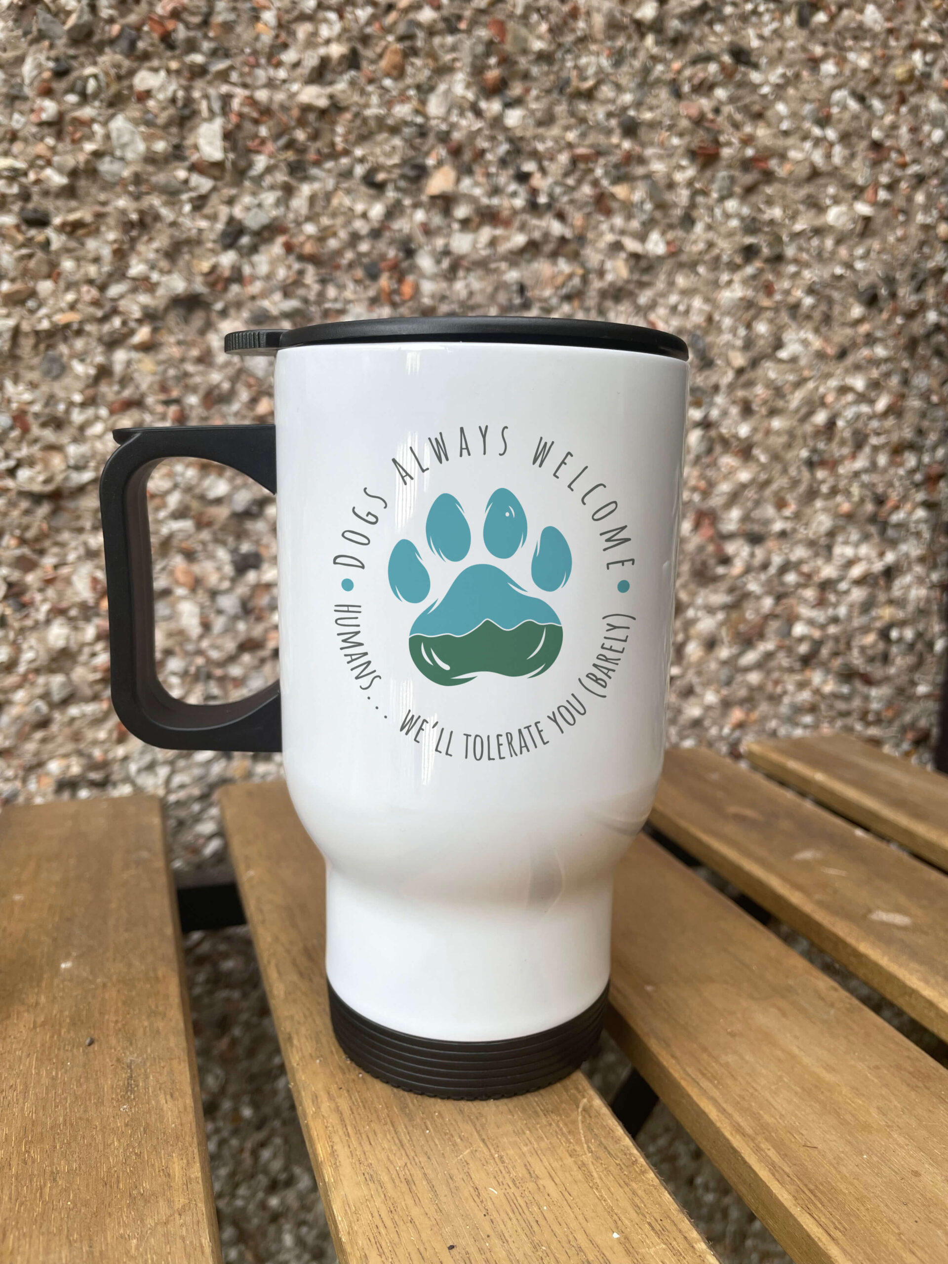 Mug has a slogan on one side and the Camping at Cardewlees logo on the other.