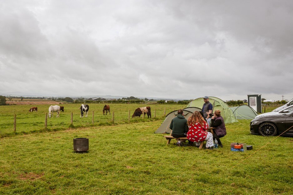 If you’re looking for a non-electric campsite near Carlisle where you can properly switch off, breathe out, and enjoy camping the way it’s meant to be — welcome to The Paddock at Camping at Cardewlees. It’s a spacious, grassy field with open views and a relaxed, back-to-basics feel. There’s lots of practical information and booking options below, and you can find out even more in our paddock guide for guests.